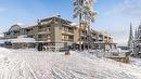 Top-floor, spacious open-concept unit in the Snow Ghost Inn featuring two bathrooms and a flexible layout that can function as a large one-bedroom or be configured into two studio units. The kitchen is equipped with a large hard-top island, stainless steel appliance package, generous cupboard space, and is ideal for entertaining or extended stays. A large bedroom can be used as a lock-off, offering excellent versatility for personal use or rental potential. This well-designed unit provides ample storage in the entryway and throughout. Ideally located just steps from the village centre, with true ski-in/ski-out access directly off Perfection Run and convenient access to three chairlifts. The unit includes a lock-off suite (321A), two ski lockers, and one covered parking stall. The building offers excellent amenities, including an on-site restaurant, indoor pool, and gym. No rental restriction